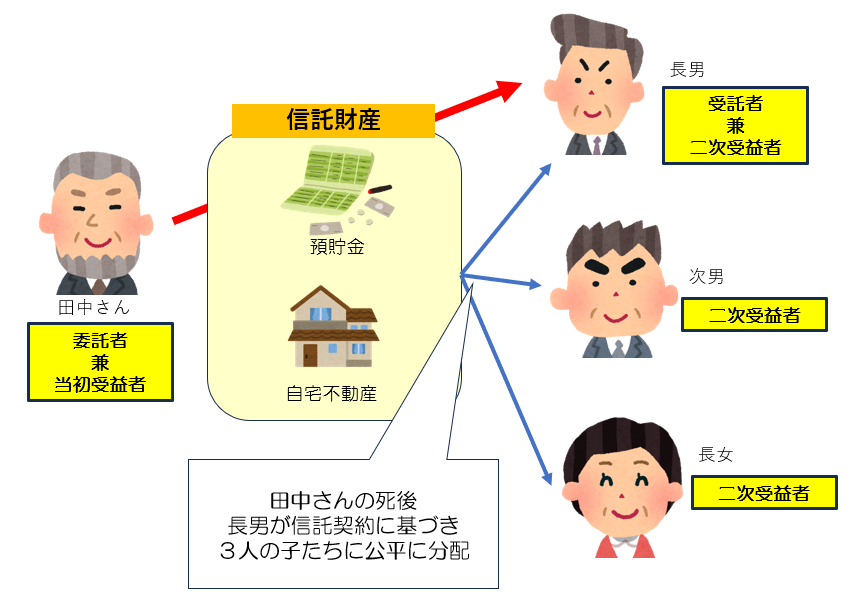 この場合、田中さんの財産は長男が独断で分配するのではなく、信託契約に基づいて分配されるため、子供たちが揉める可能性が低くなります。