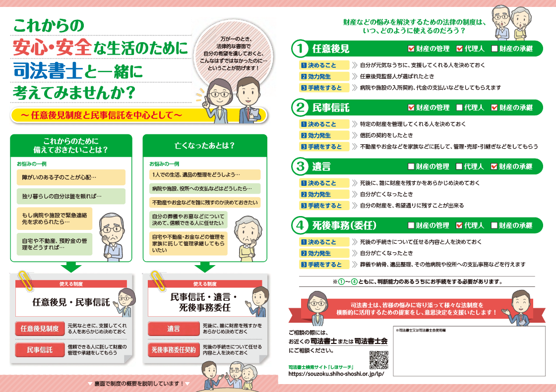 司法書士・行政書士津田リーガルオフィスでは、家族信託契約書の作成、公証人との調整、信託登記手続き、信託口口座の開設支援など、家族信託に関する様々な業務を行っております。